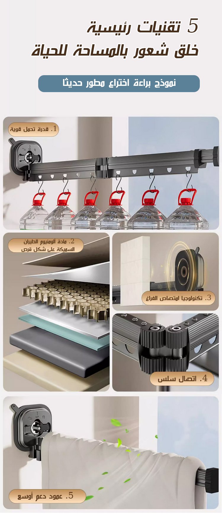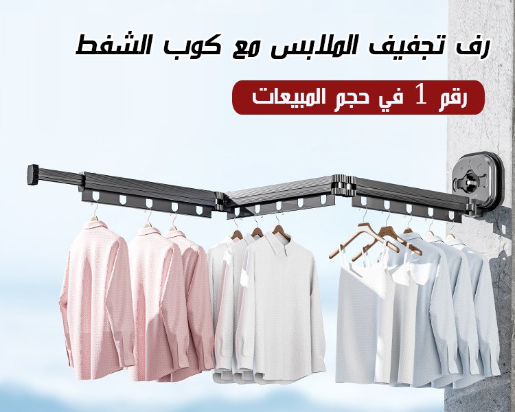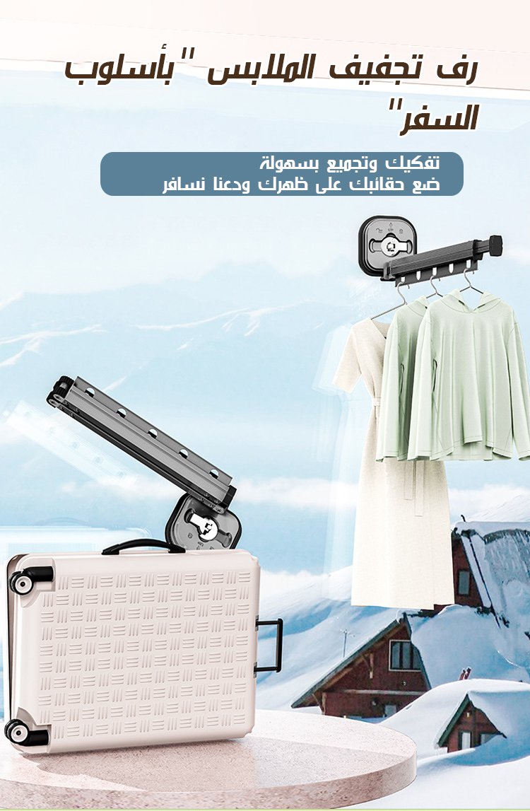 رف تجفيف الملابس القابل للطي المثبت على الحائط مع كوب الشفط